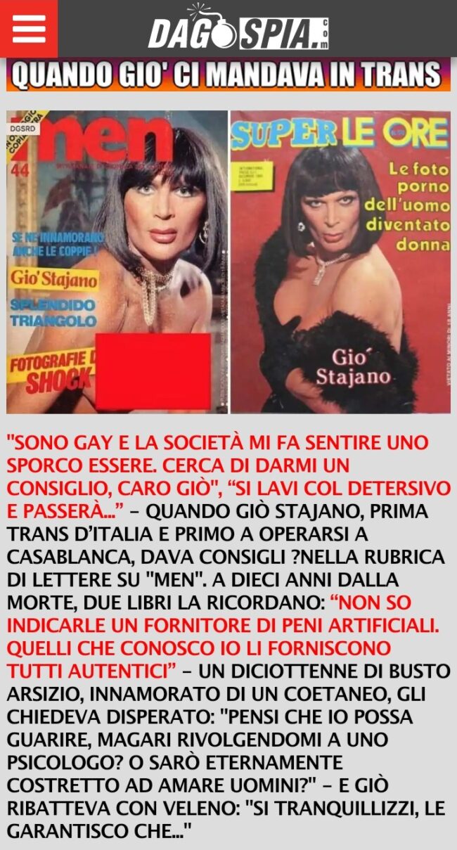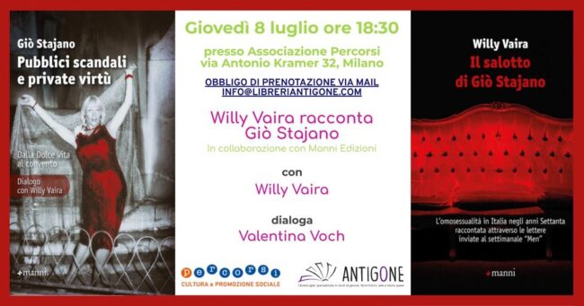 A Torino dal 26/04/22 al 1/05/22 torna il Lovers film festival e torna il “ Gio’ Stajano award” dedicato alla prima icona LGBTQI + italiana. Per maggiori informazioni e per acquistare i biglietti: programma sul sito ufficiale di Lovers Film Festival